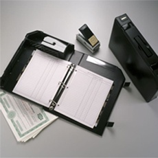 The best legal kit currently on the market, this kit has a high quality black leatherette cover with brass highlights. A sturdy, well-designed presentation package with a handy carrying handle. Special features include pockets for business cards and a flip-out clear vinyl pocket for file reference. This all-in-one case also houses the patented MarkMaker® seal.